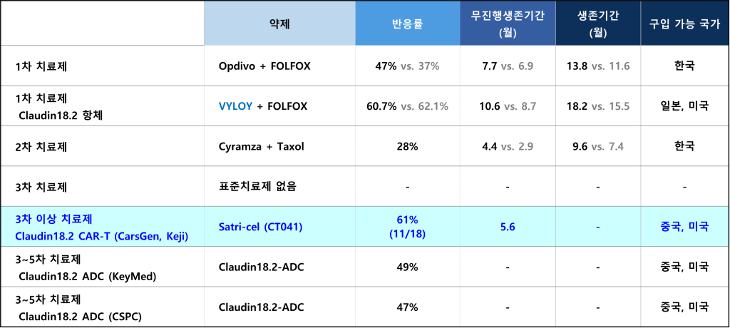 Claudin18.2 CAR-T가 획기적인 효력을 보임: 3차 이상 환자에서 반응율은 1차 치료제 수준